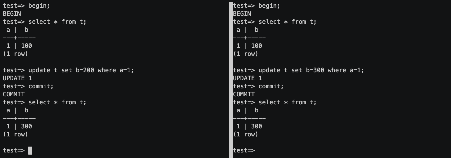 아래 예시는 Lost updates에 대한 문제를 보여준다.